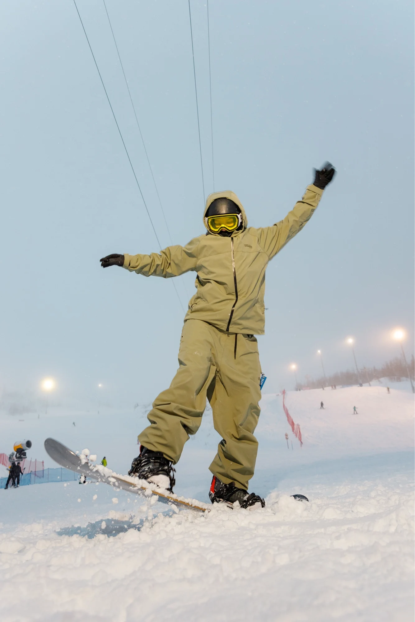 The suit is very cool! Already tested on the slope, passed the wind, snow, and water protection test 100%. Inside, of course, there is thermal underwear, and if you just sit on the snow it gets cold, but for skiing it's simply excellent. For height 175, clothing size M, took L so that nothing restricts movement.