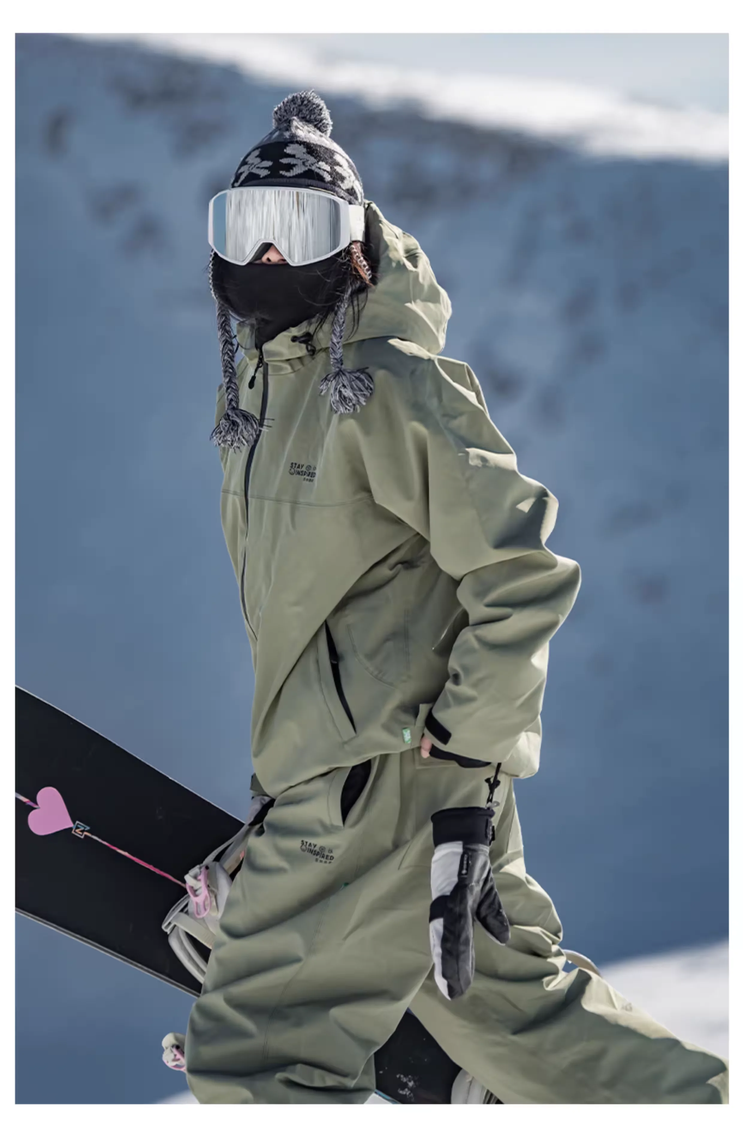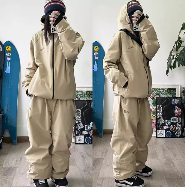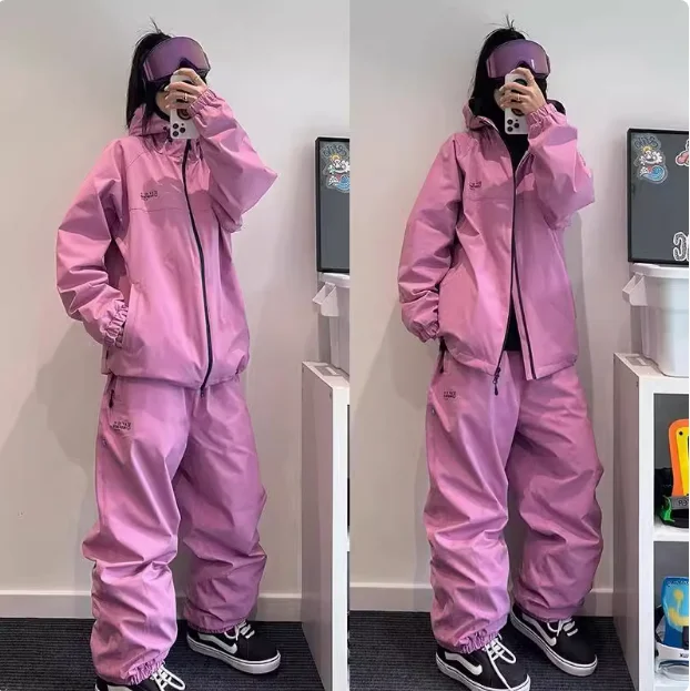 Featuring a loose type design, this ski suit set is suitable for both male and female snowboarders.